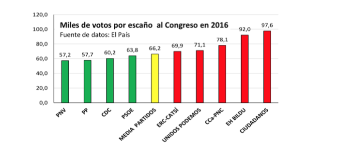 Sólo se muestran datos de partidos o coaliciones de ámbito nacional, y que obtengan representación.