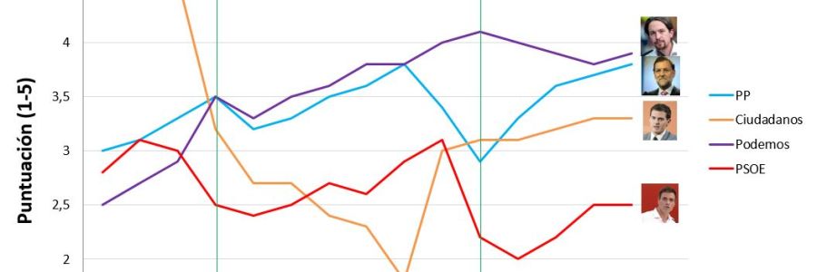 Compleja y fallida campaña, de más a menos, aunque remontando en los últimos días, excesivamente centrada en la figura de un Albert Rivera aparentemente muy fatigado, y no en vender la fuerza del partido y su equipo. Tras llegar de una situación idílica de la precampaña donde muchas encuestas lo situaban segundo, las expectativas eran peligrosamente tan altas, que el debate a tres y el debate a cuatro no transmiten la sensación de cumplir con un listón tan elevado. El acto de Vistalegre eleva la moral y el mal debate cara a cara de Rajoy y Sánchez vuelven a reposicionarle como alternativa moderada en la recta final, al menos variando en parte la tendencia negativa.
